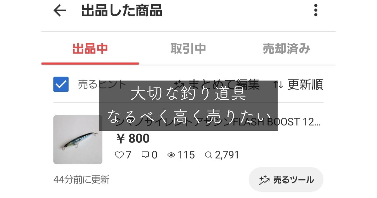 今まで使って来た大切な釣り道具、最新機種に切り替えたいのでフリマで売りたい。私の場合メルカリに出品しています。メルカリでの出品回数も100件を超え、メルカリを利用する方々の行動パターンもつかめてきました。なるべく高価格で売りたい!メルカリで高く売るためのノウハウをまとめました。