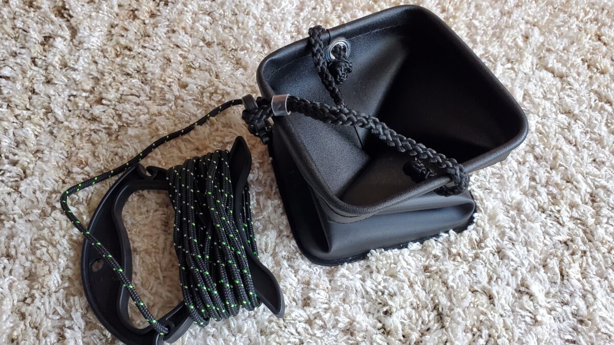 持ち運びが便利で邪魔にならないサイズ、イメージ的には500mlのペットボトルサイズにロープが付いたバケツが欲しい。